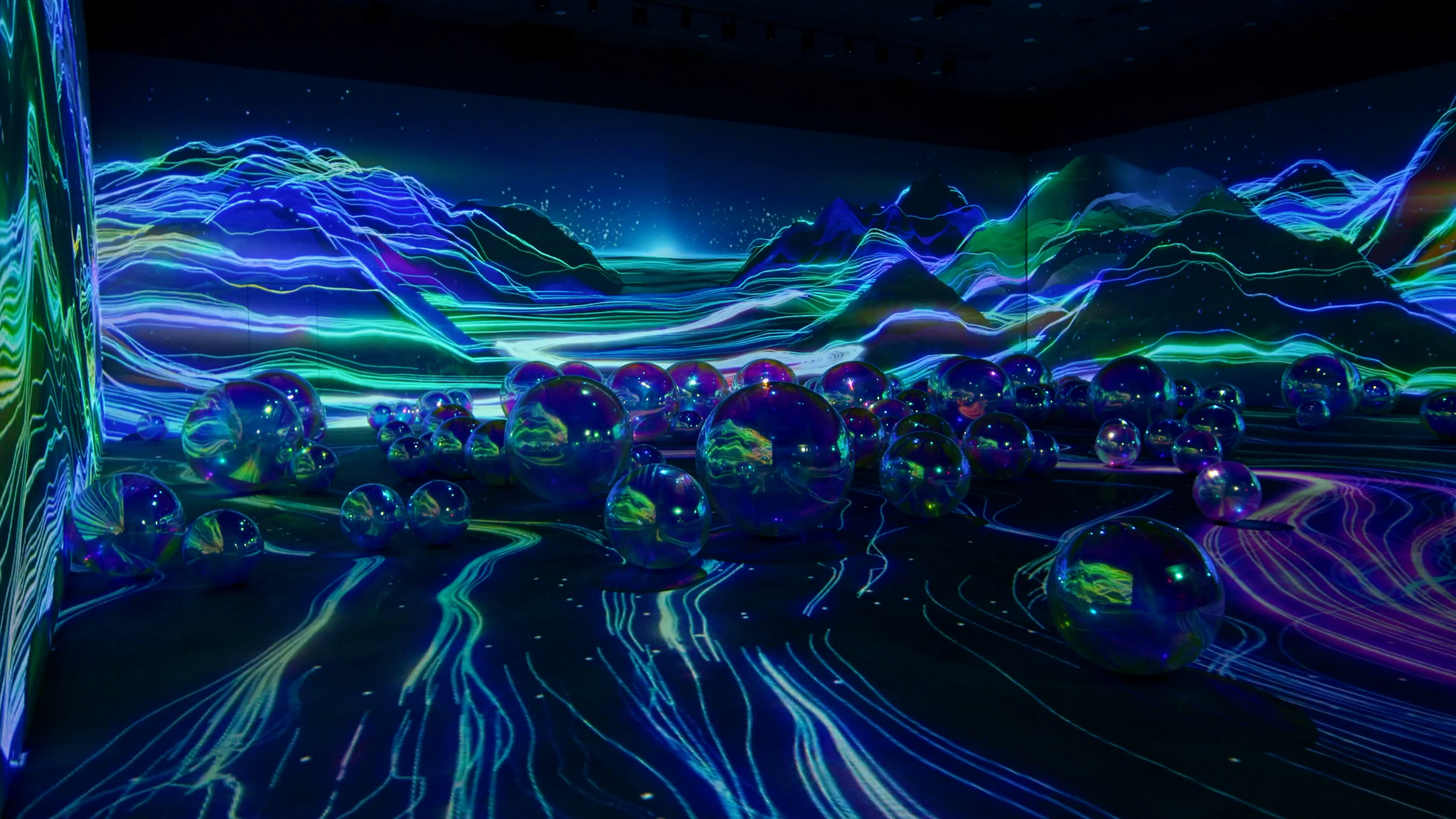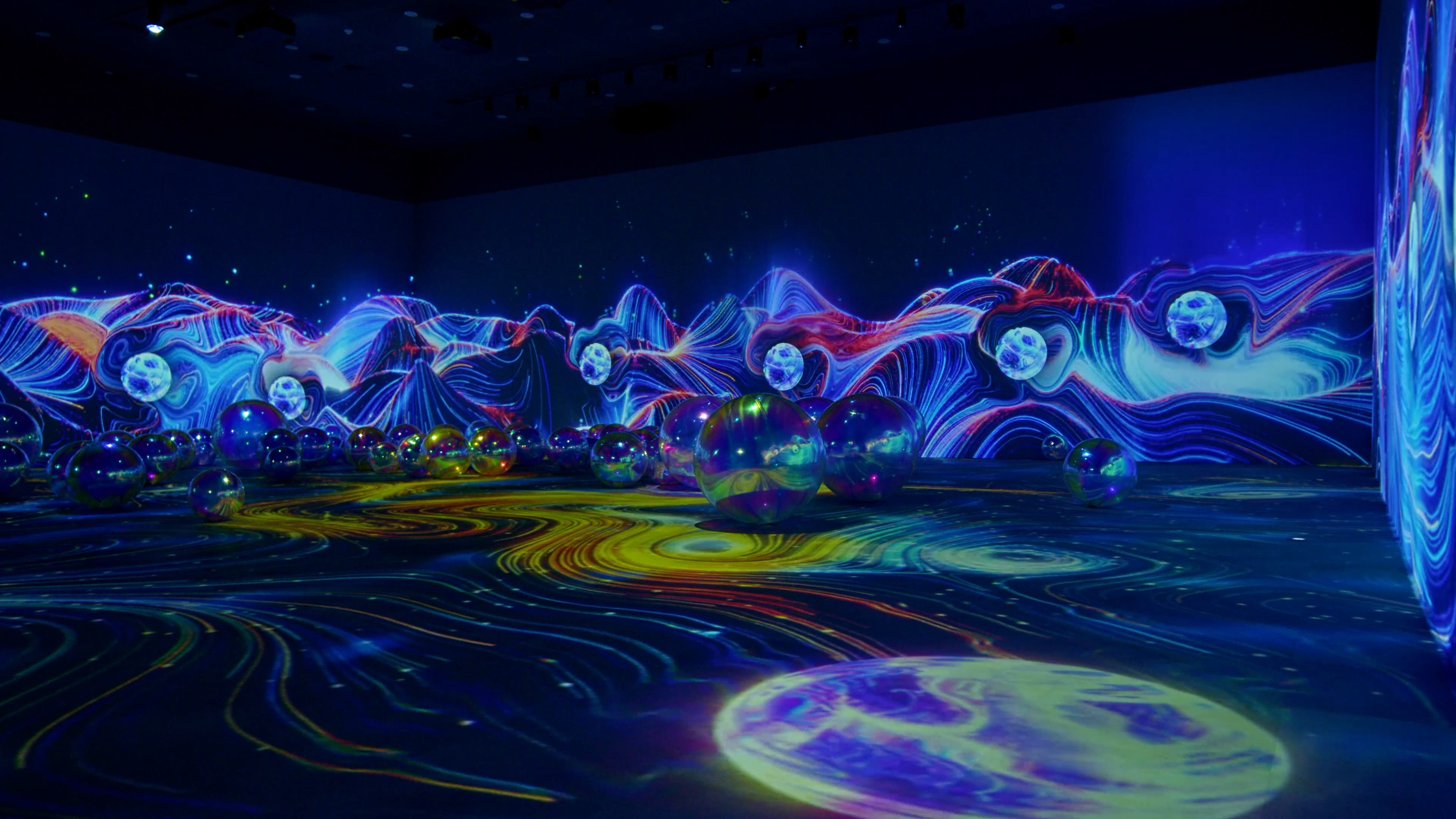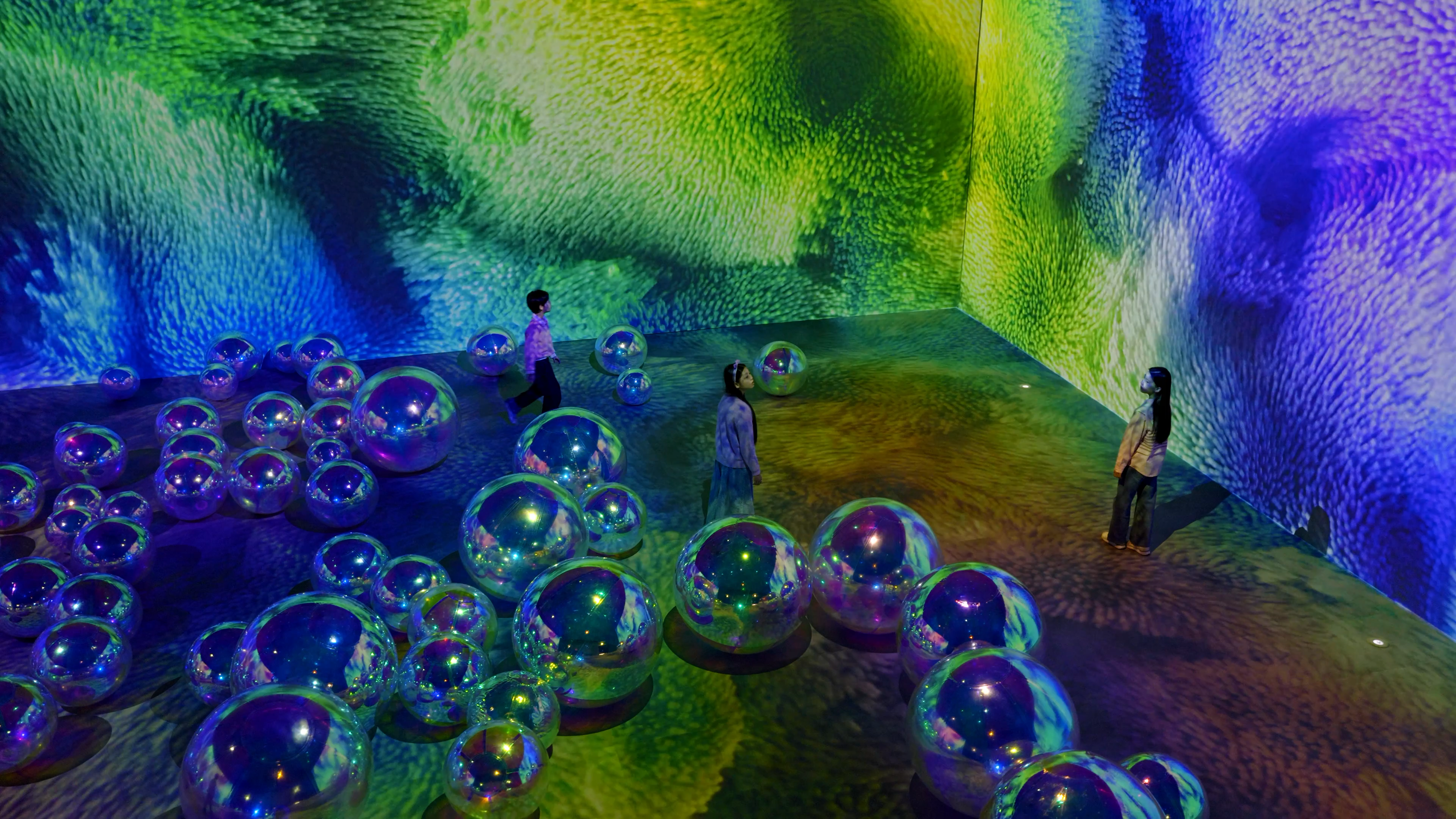 Presented in a four-surface format—where three walls and the floor extend as one continuous scene—
