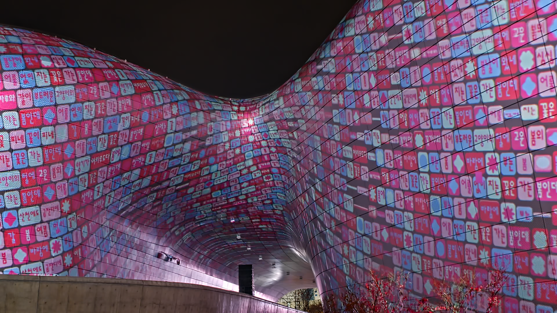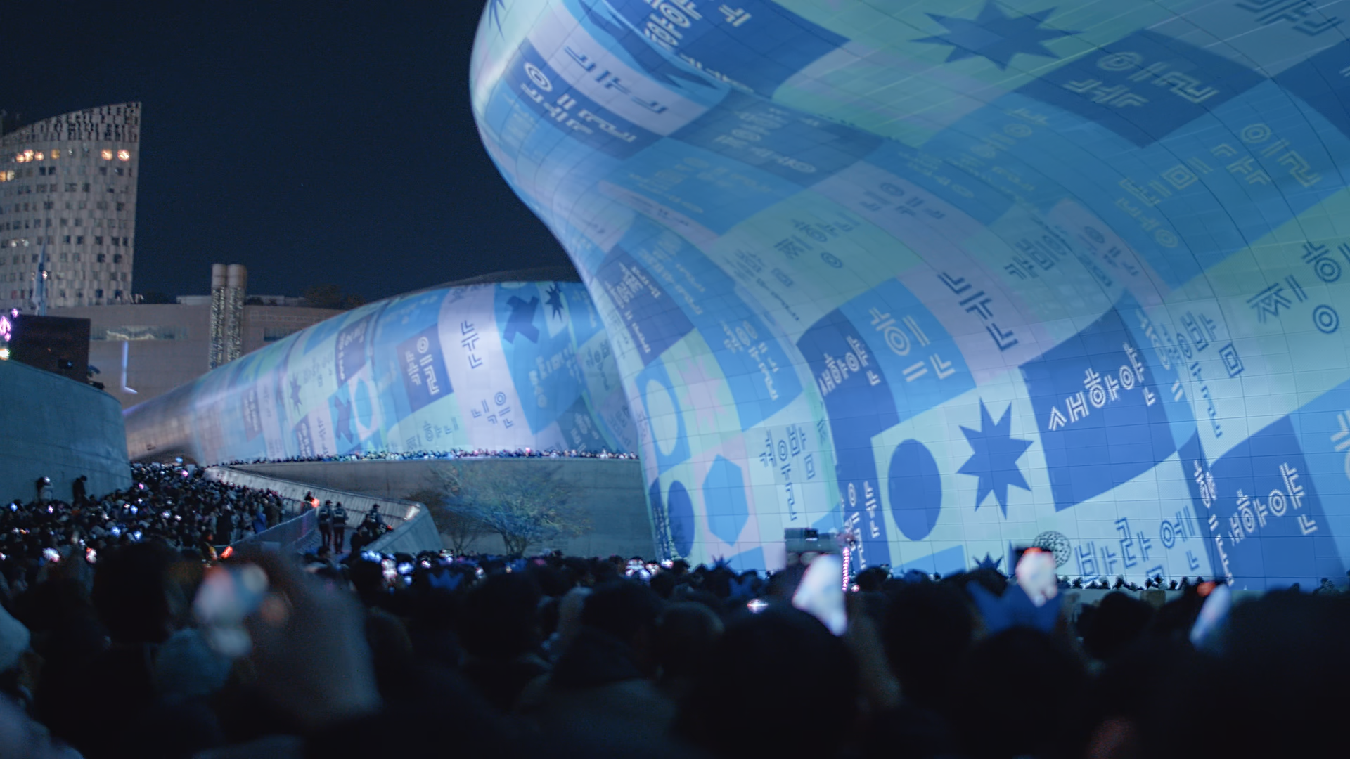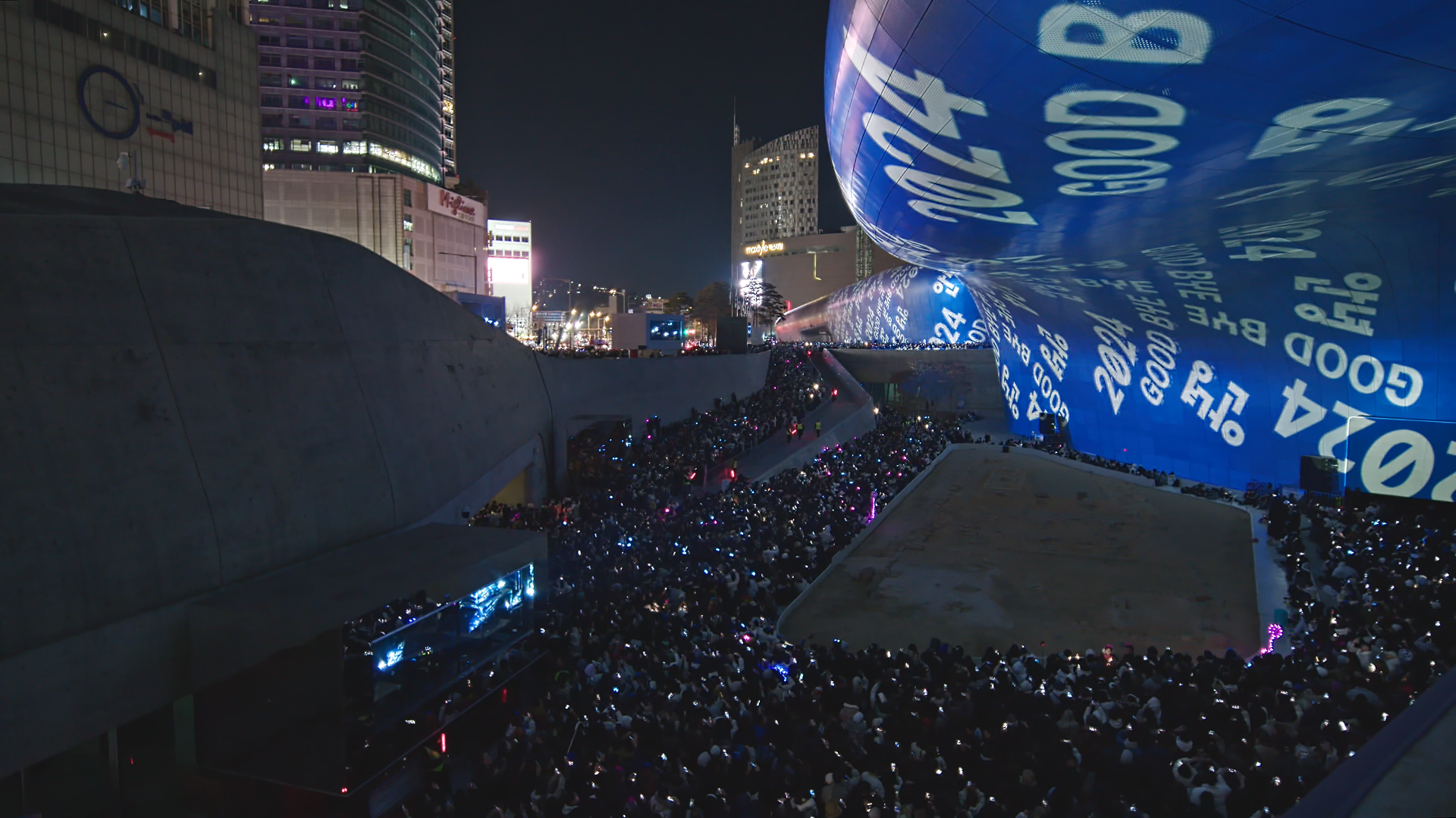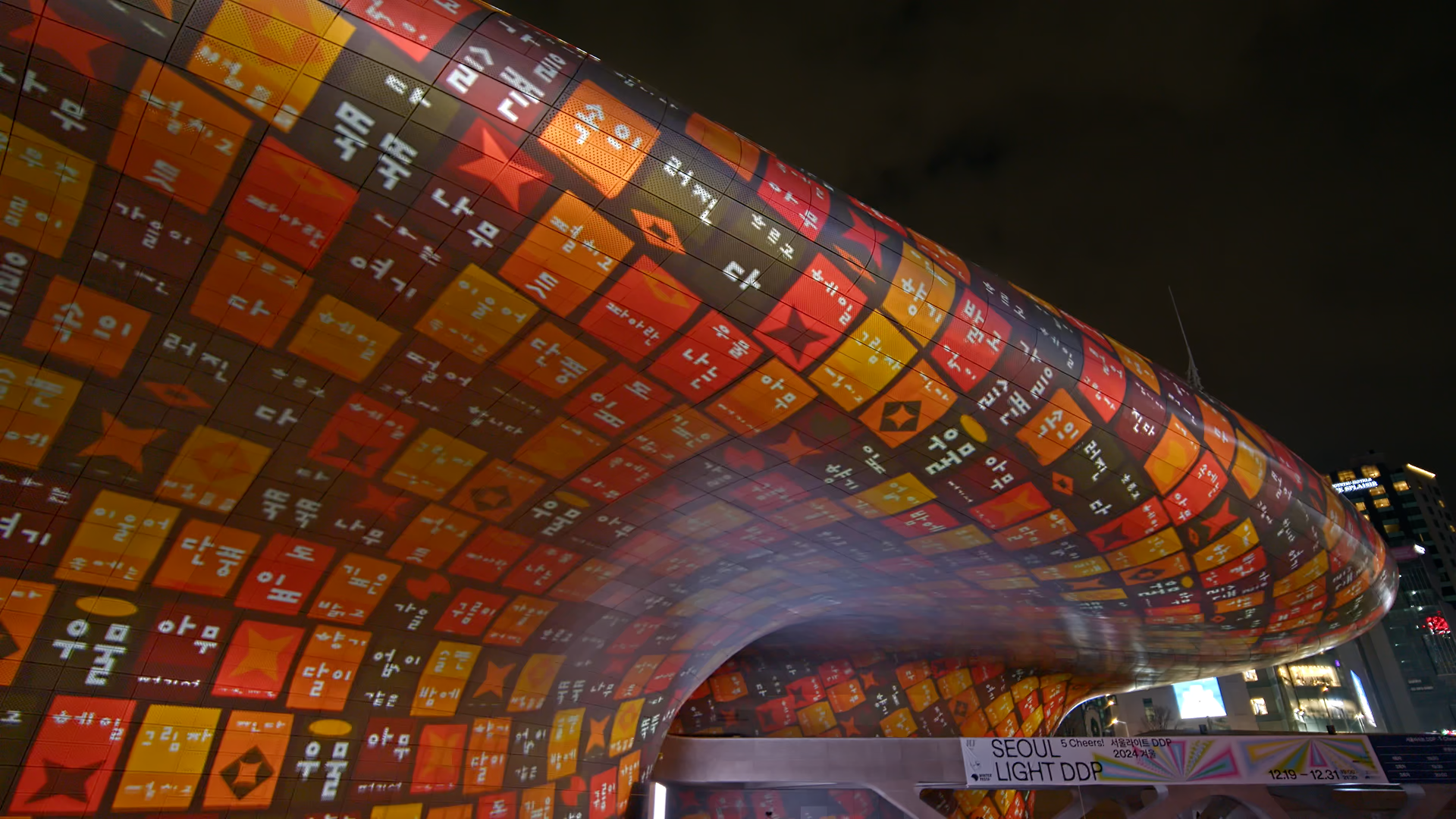 “COUNTDOWN 2025” offered audiences a lyrical and visually impactful reflection on the past year. Before the final 10-second countdown, the artwork brought Korea’s four seasons to life, blending literature from renowned modern Korean poets with digital art to capture each season’s essence. This transformation was realized through kinetic typography, created in collaboration with AG, a typography studio specializing in Hangul (the Korean writing system), and the media art collective VERSEDAY. The text organically flowed along DDP’s curved aluminum panels, dynamically morphing with the shifting seasons to create a rhythmic and emotionally resonant visual narrative.